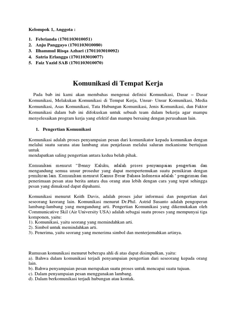Tugas Kombis Komunikasi Di Tempat Kerja Kelompok 1